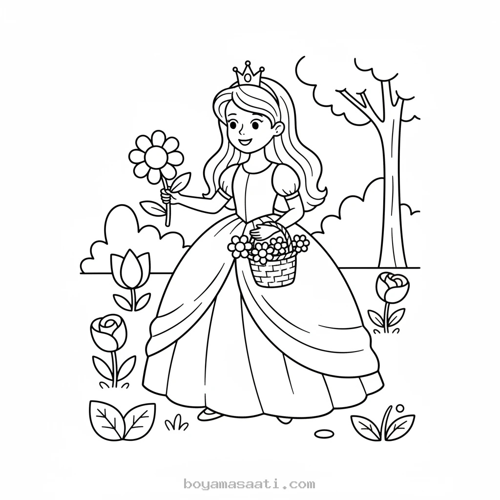 Bahçede Çiçek Toplayan Prenses Boyama Sayfası