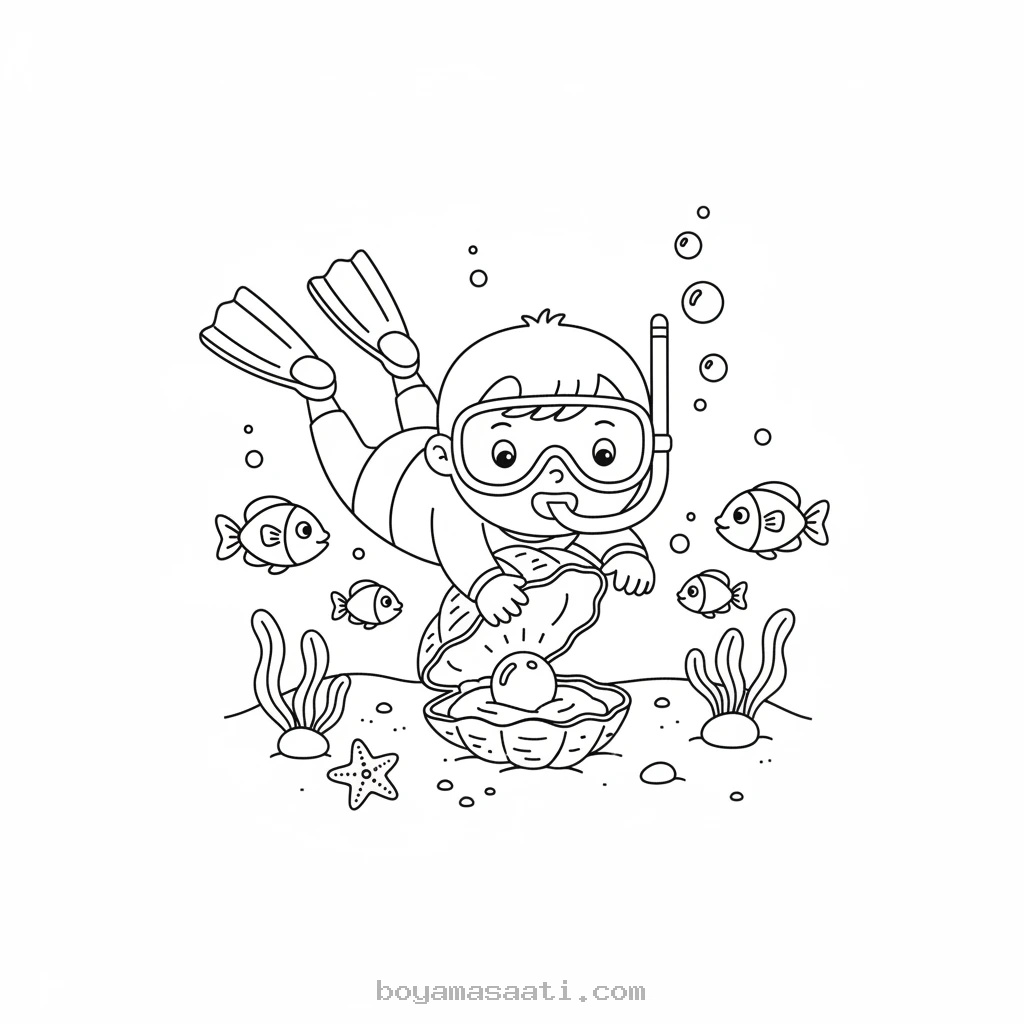 Miniklerin hayal gücünü geliştirecek, su altı dünyasının gizemli atmosferine dalmalarını sağlayacak bu eğitici boyama sayfası ile tanışın! İnci avlayan minik karakterimiz, çocuklara hem keyifli anlar yaşatacak hem de renkleri keşfetmelerine yardımcı olacak. Özellikle okul öncesi çağındaki çocuklar için hazırlanan bu kolay ve ücretsiz boyama sayfası, onların ince motor becerilerini desteklerken el-göz koordinasyonlarını da güçlendirecek.