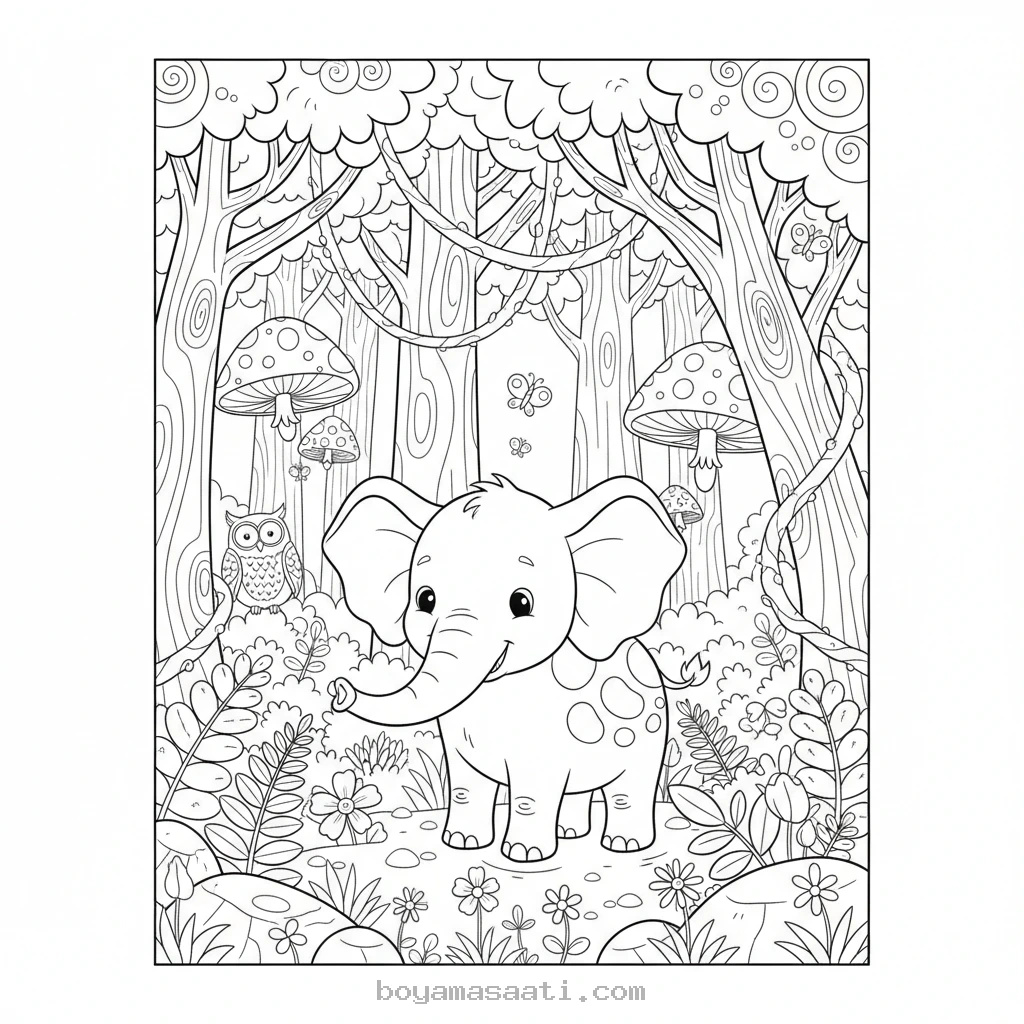 Gizemli Ormanda Dolaşan Fil Boyama Sayfası