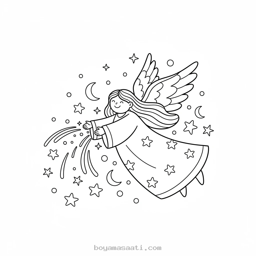 Gökyüzünde Parlayan Yıldız Tozu Boyama Sayfası