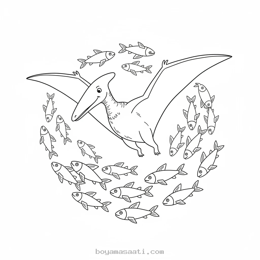 Gökyüzünde Uçan Balık Sürüsü Boyama Sayfası