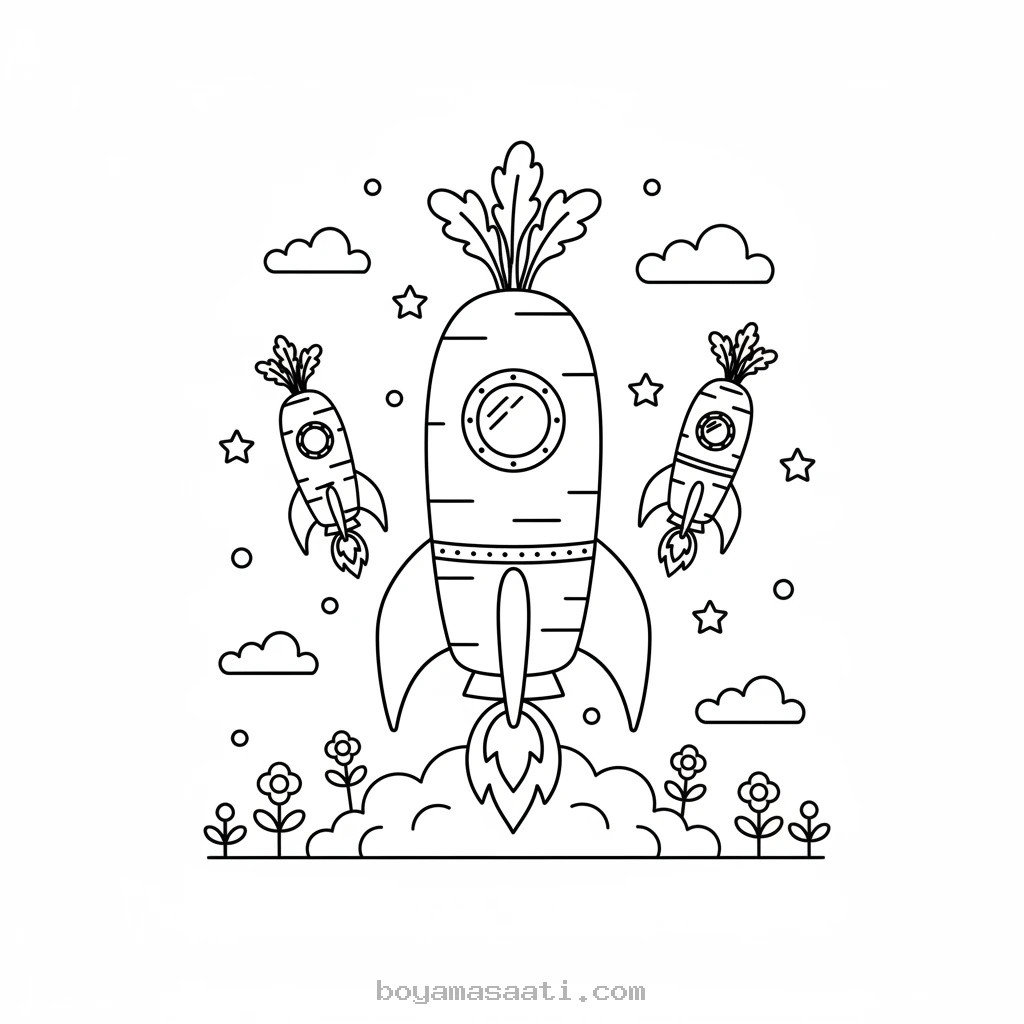 Gökyüzünde Uçan Havuç Roketi Boyama Sayfası
