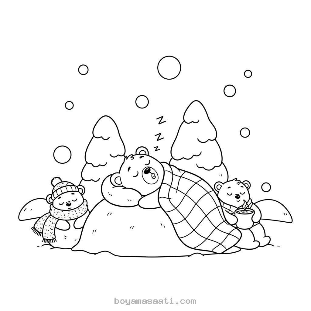 Kış Uykusundaki Tembel Ayıcık Boyama Sayfası