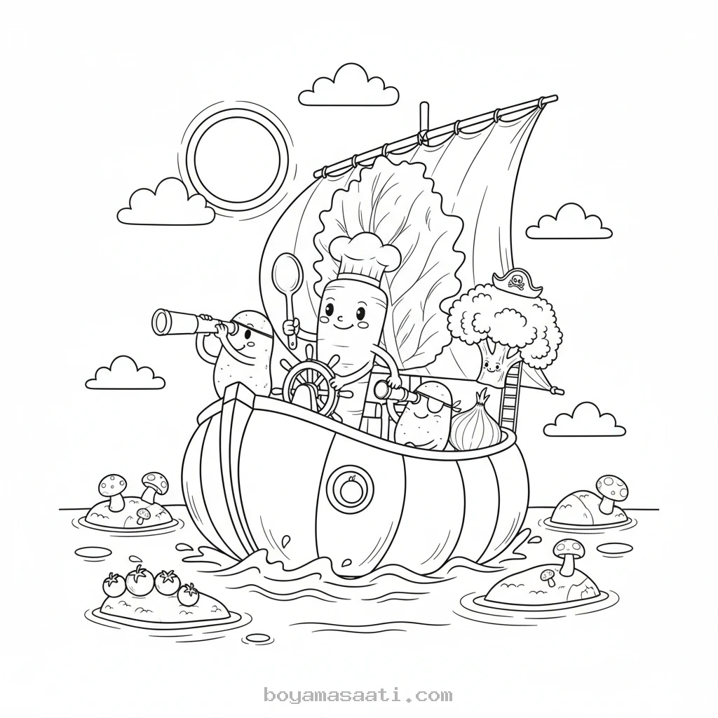 Minik şefler ve sebzeleri seven çocuklar için özel olarak hazırladığımız bu maceracı sebzeler aşçı boyama sayfası ile mutfak maceralarına katılın! Çocukların hayal güçlerini geliştiren bu eğlenceli ve eğitici boyama sayfası, okul öncesi dönemdeki miniklerin öğrenme süreçlerine katkıda bulunur. Sebzelerin dünyasını keşfederken renkleri tanıma ve yaratıcılıklarını ifade etme fırsatı bulacaklar. Bu ücretsiz boyama sayfası, çocukların keyifli vakit geçirmesi için idealdir.