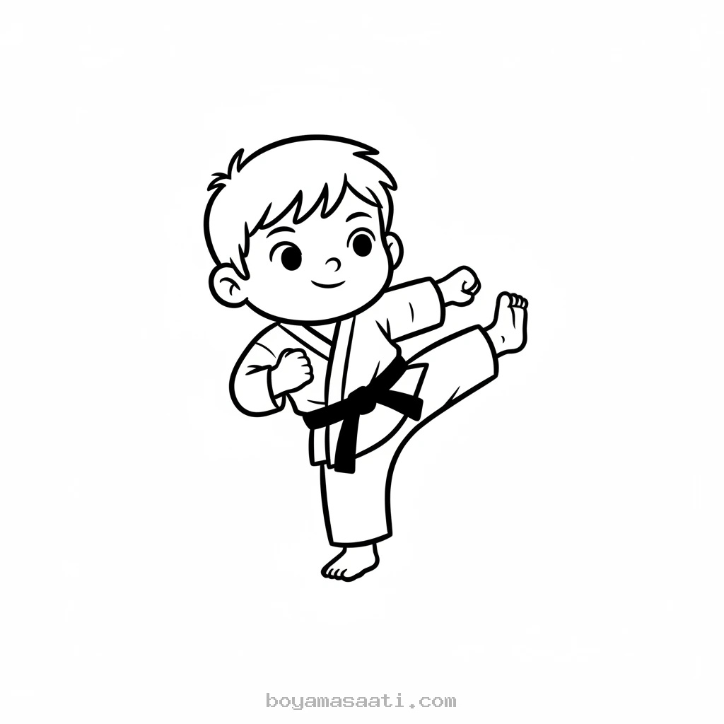 Minik Karateci Tekme Atıyor Boyama Sayfası