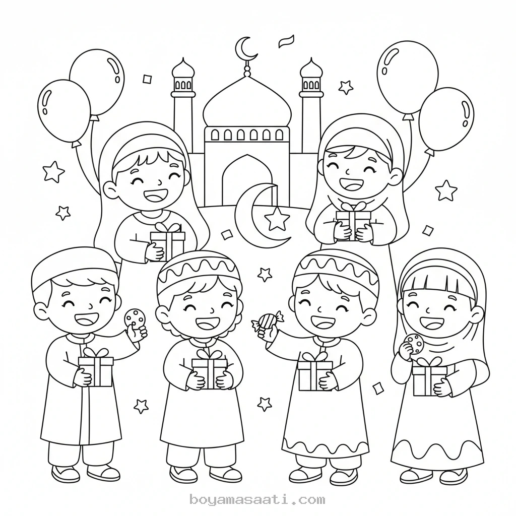Ramazan Bayramı'nın getirdiği sevinci çocuklarınızla paylaşmanın en güzel yollarından biri, neşeli çocuklar Ramazan boyama sayfası etkinliğimizdir. Çocuklar için özel olarak hazırlanan bu ücretsiz ve yazdırılabilir sayfalar, bayram coşkusunu renklerle buluşturur. Okul öncesi ve ilkokul çağındaki çocukların keyifle boyayabileceği kolay tasarımlarımızla, bayram hazırlıklarına eğlenceli bir başlangıç yapabilirsiniz.