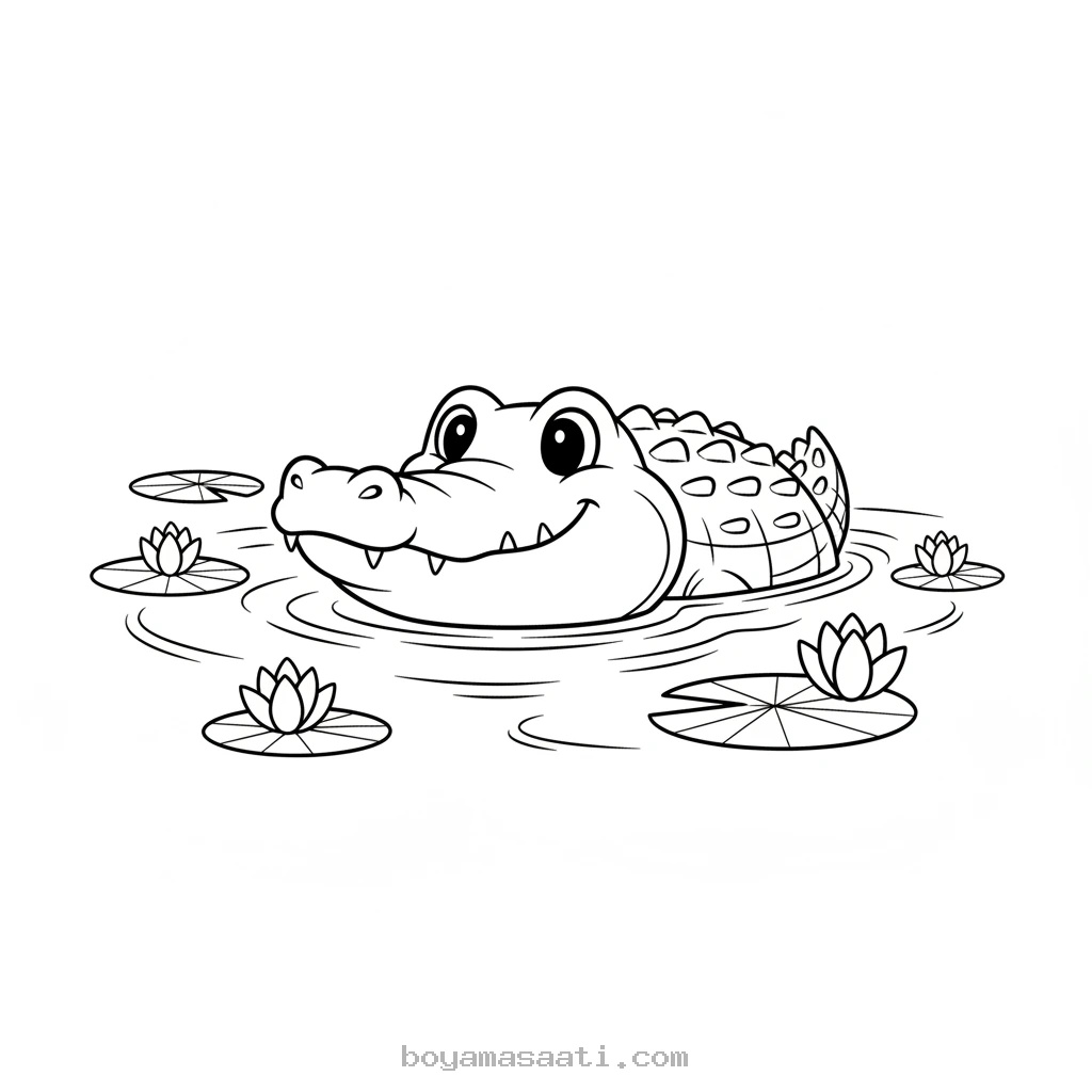 Nil Nehrinde Yüzen Timsah Boyama Sayfası