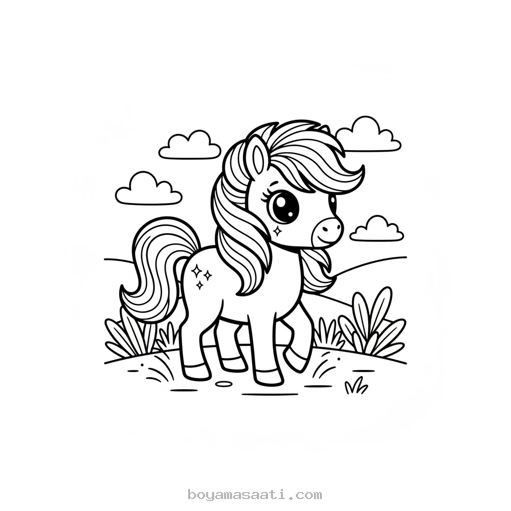 Parlak Tüyleriyle Pırıl Pırıl Pony Boyama Sayfası