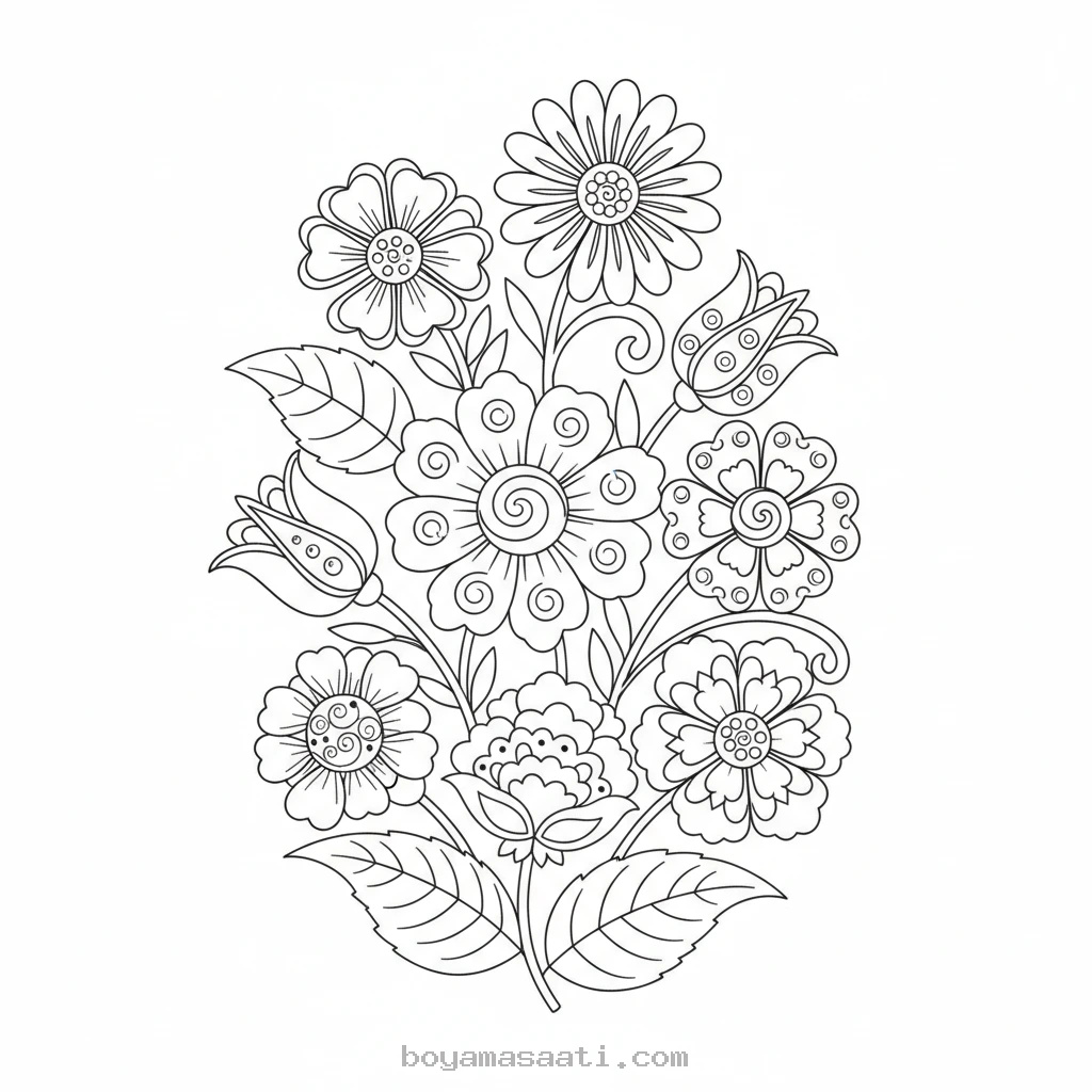 Rengarenk Çini Çiçekleri ile Süslü Boyama Sayfası