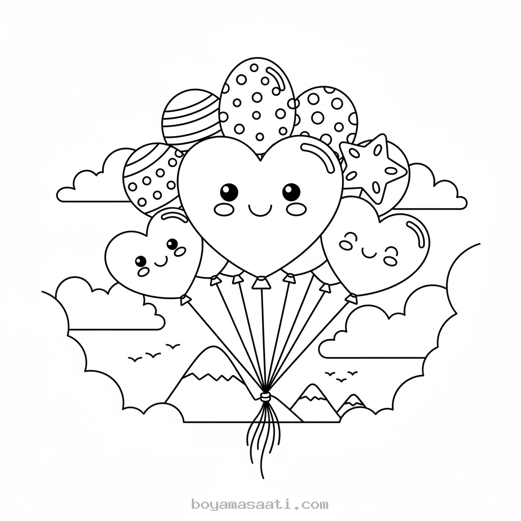 Sevimli Kalpler Balonlarla Boyama Sayfası