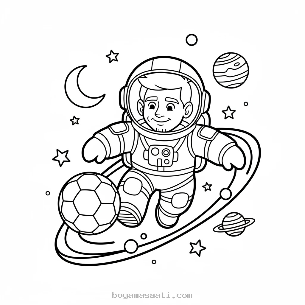 Uzayda Süzülen Futbol Topu Boyama Sayfası