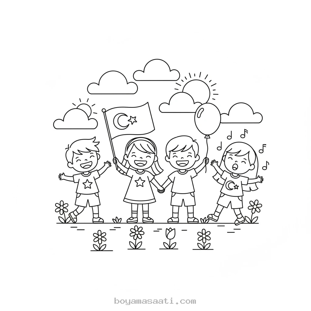 23 Nisan Kutlayan Çocuklar Boyama Sayfası