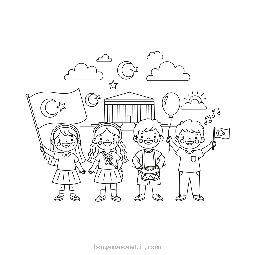 29 Ekim Cumhuriyet Bayramı Kutlaması Boyama Sayfası