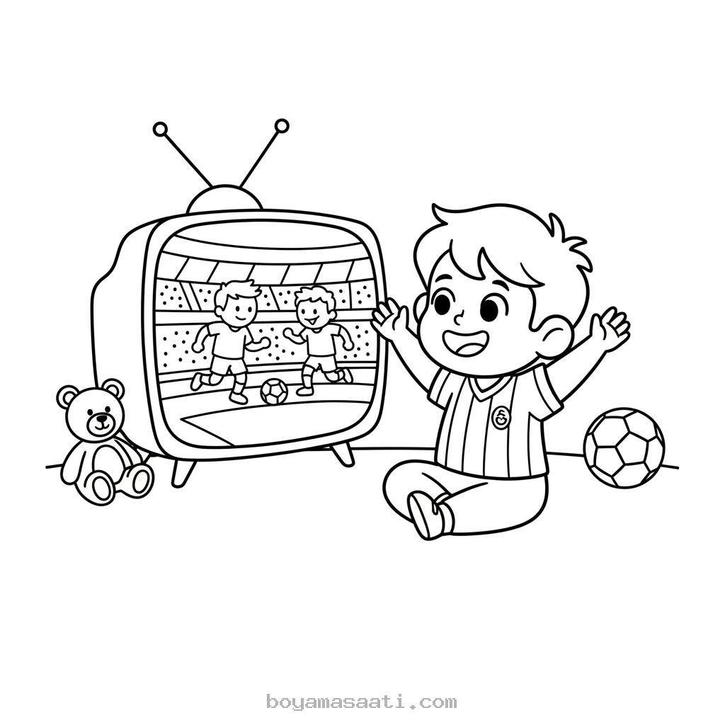 Galatasaray Maçı İzleyen Çocuk Boyama Sayfası
