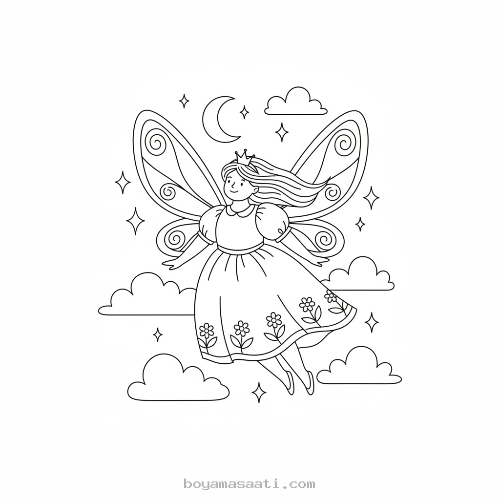 Gökyüzünde Süzülen Peri Boyama Sayfası
