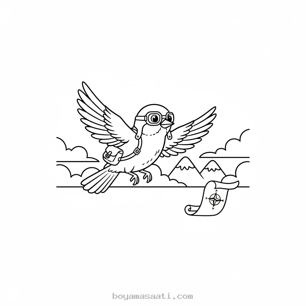 Gökyüzünde Uçan Maceracı Serçe Boyama Sayfası