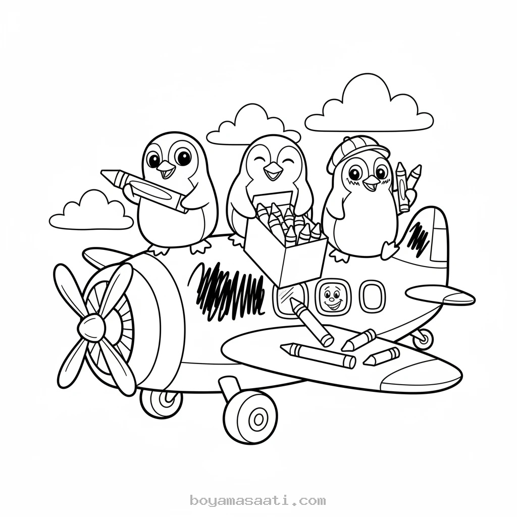 Haylaz Penguenlerin Pastel Boyalarla Boyama Sayfası