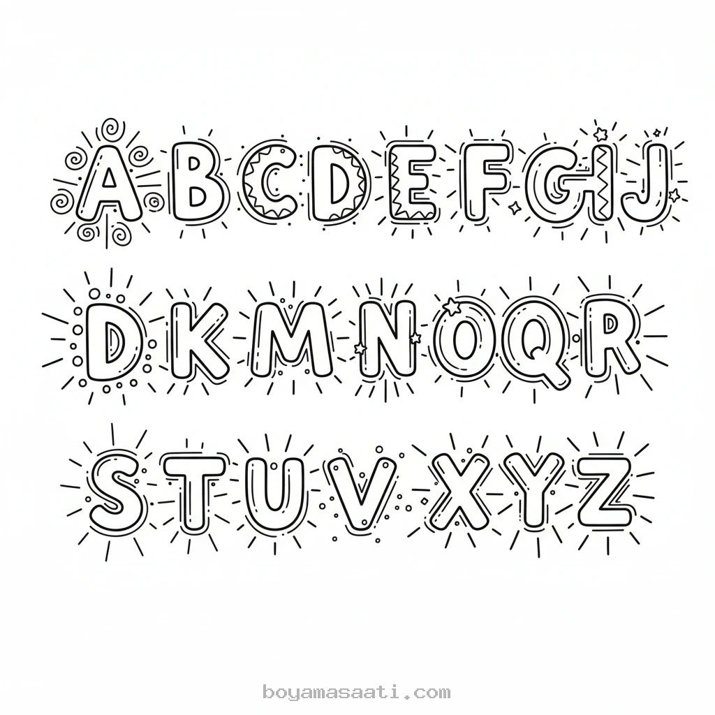 Her Harfi Işıldatan Alfabe Boyama Sayfası