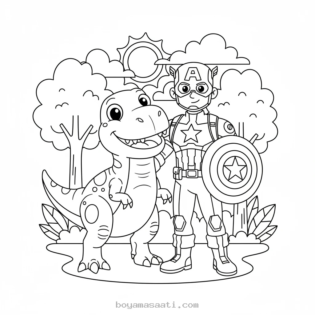 Kaptan Amerika Dost Canlısı Dinozor Boyama Sayfası