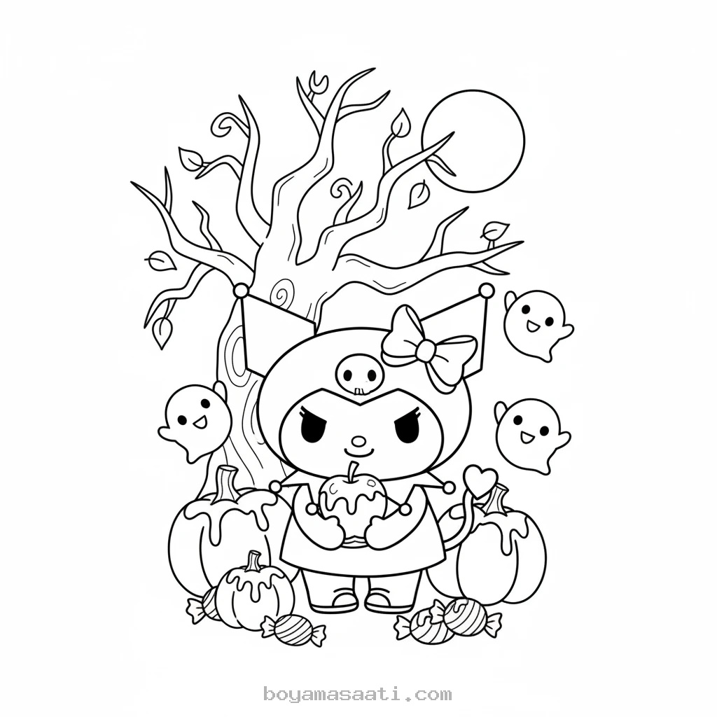 Karamelli Cadılar Bayramı Temalı Boyama Sayfası