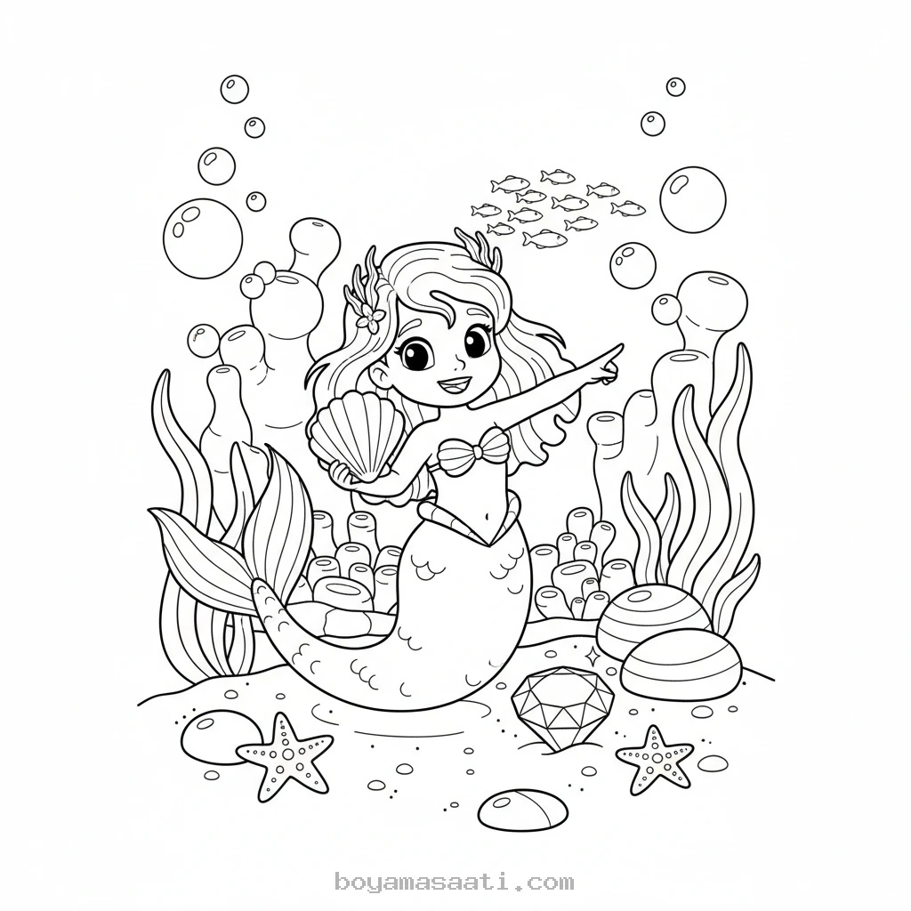 Kayıp Mücevheri Arayan Deniz Kızı Boyama Sayfası