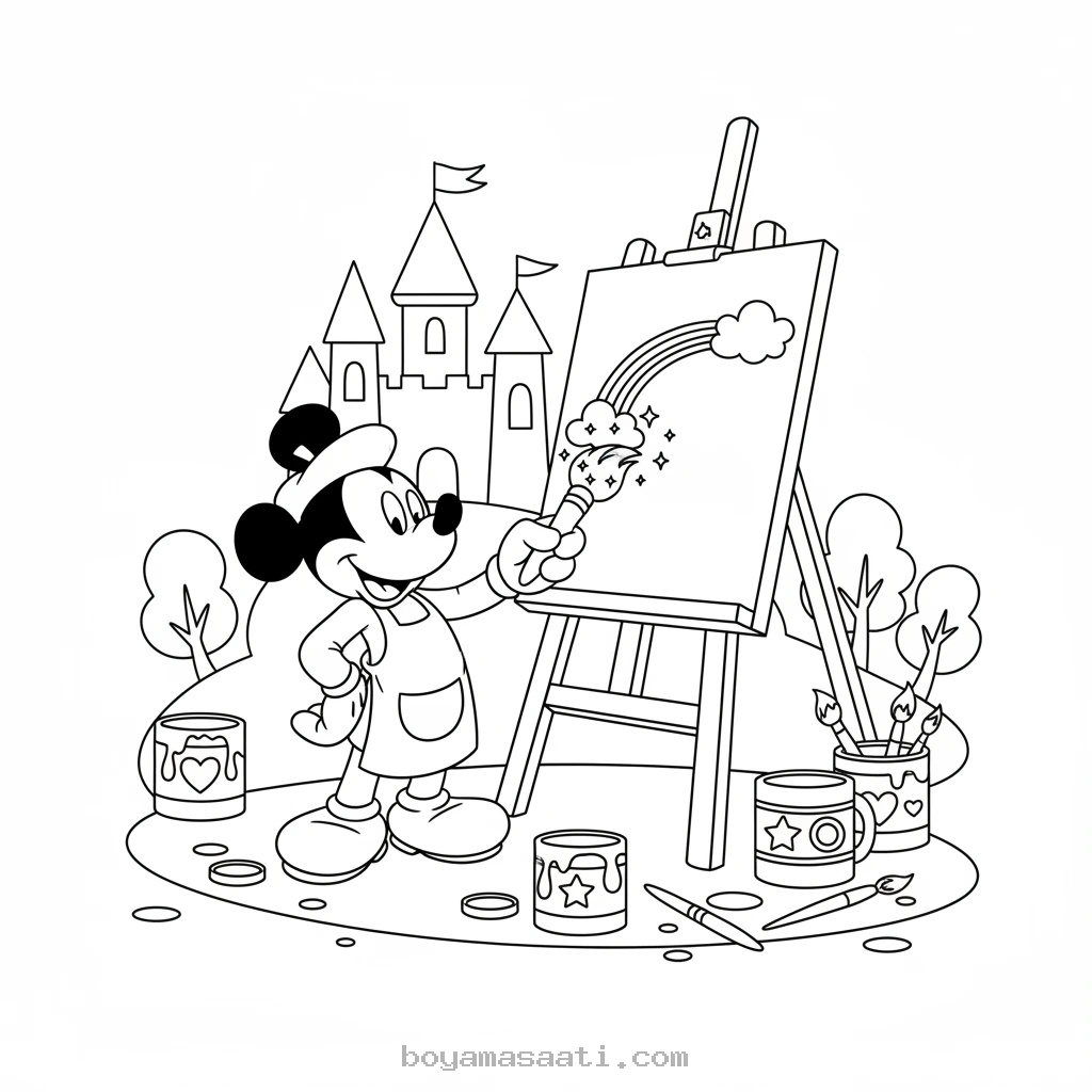 Miki Mouse Sihirli Boyalarla Resim Yapıyor Boyama Sayfası