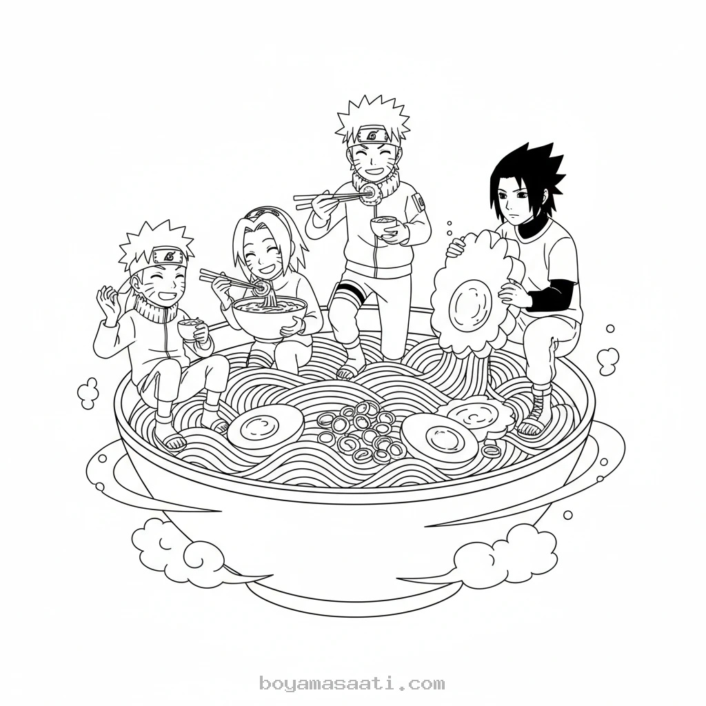 Naruto ve Arkadaşları Dev Ramen Yiyen Boyama Sayfası