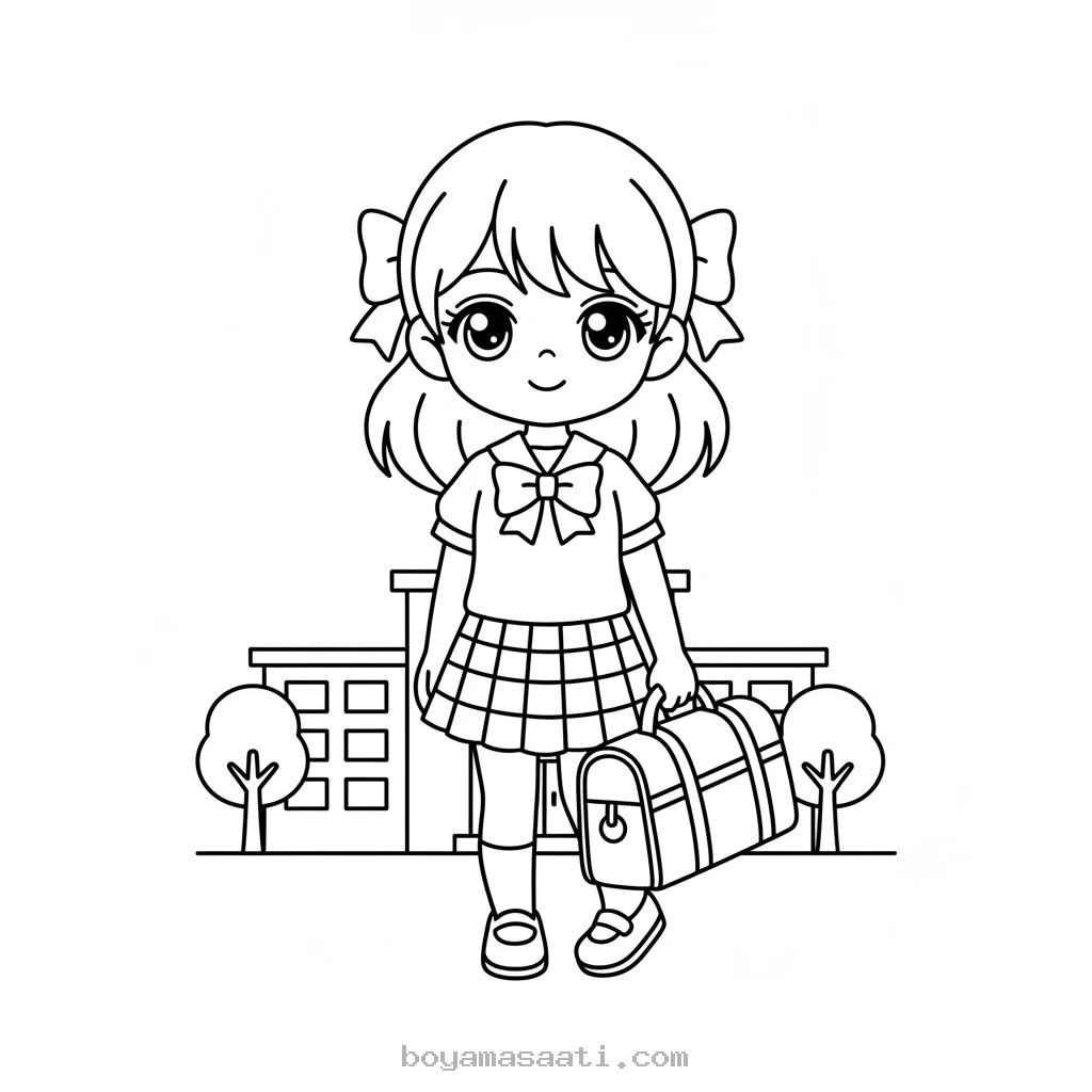Okul Kıyafetli Anime Kız Boyama Sayfası