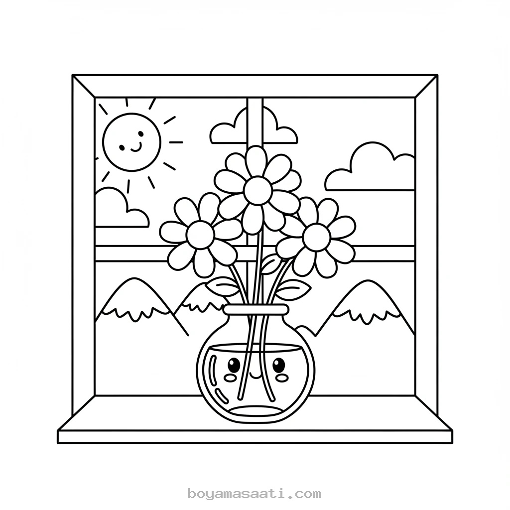 Pencerede duran vazo boyama sayfası, çocuklarınızın sanatsal yeteneklerini geliştirmeleri için harika bir fırsat sunuyor. Bu ücretsiz ve yazdırılabilir boyama aktivitesi, miniklerin ev ortamındaki nesneleri tanıma ve renklendirme becerilerini pekiştirir. Özellikle okul öncesi dönemdeki çocuklar için hazırlanan bu kolay boyama sayfası, onların görsel algılarını ve renk seçimlerini desteklerken eğlenceli vakit geçirmelerini sağlar.