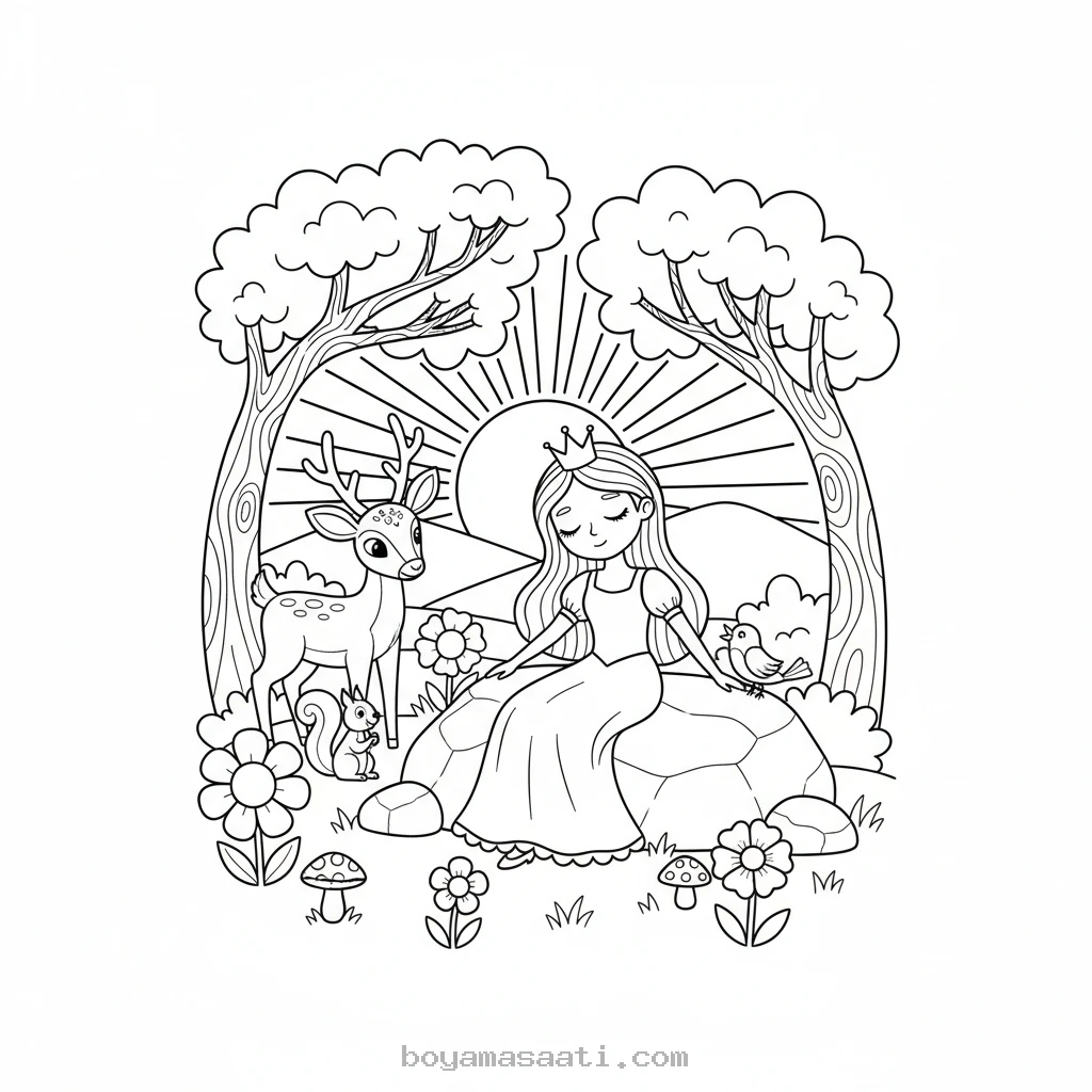 Şafakta Uyanan Prenses ve Ormanı Boyama Sayfası