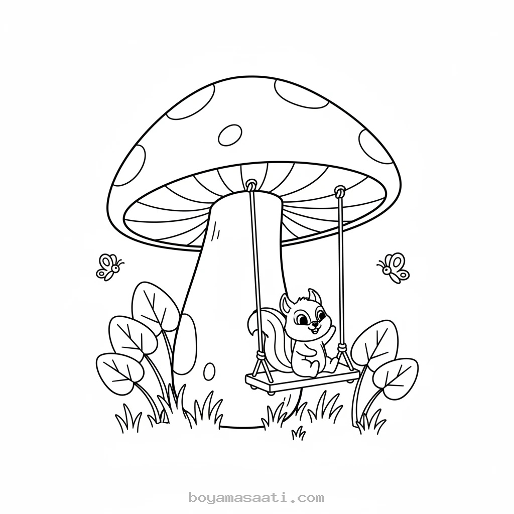 Şapkası Salıncak Olan Mantar Boyama Sayfası
