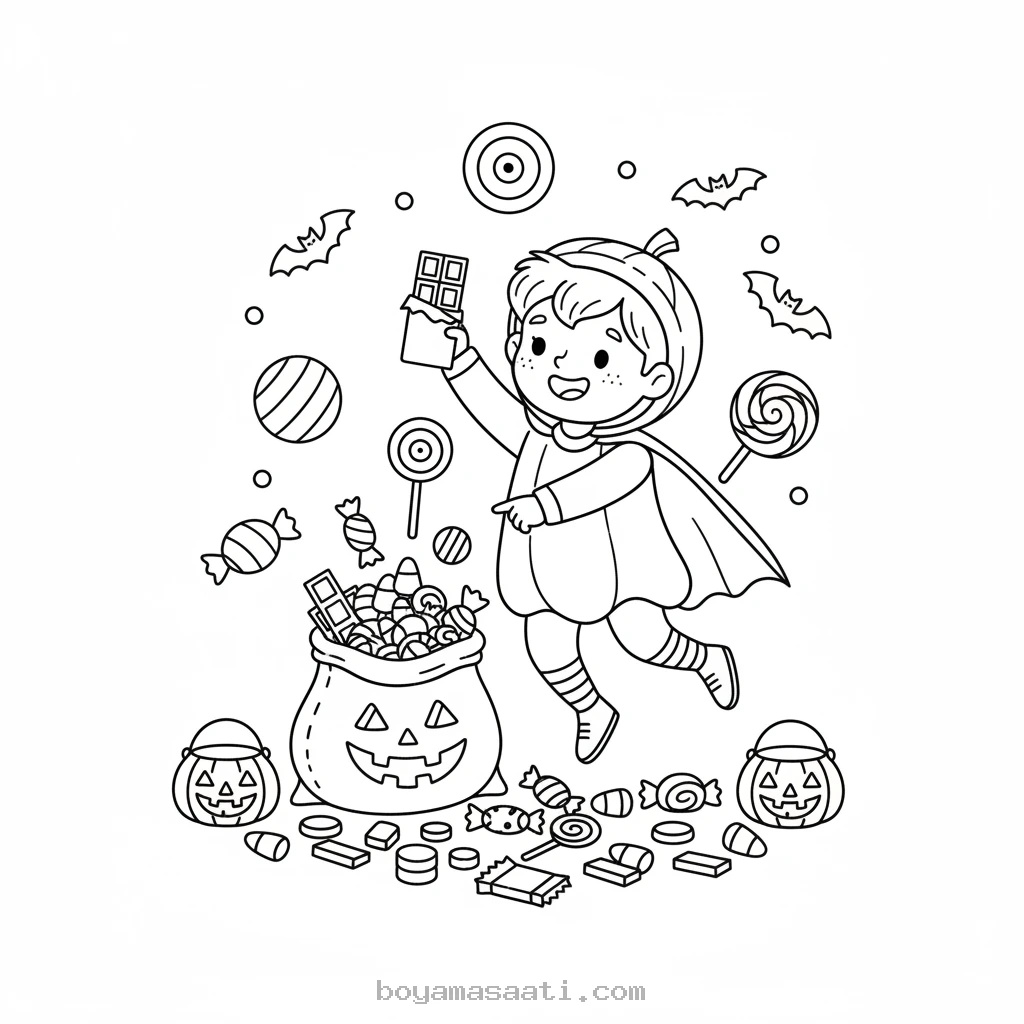 Cadılar Bayramı coşkusunu evlerinize taşıyan bu özel ücretsiz boyama sayfası ile çocuklarınızın keyifli vakit geçirmesini sağlayın! Şekerlemelerini sayarken neşeyle dans eden sevimli karakterlerle dolu bu yazdırılabilir sayfa, miniklerin hayal güçlerini harekete geçirecek.