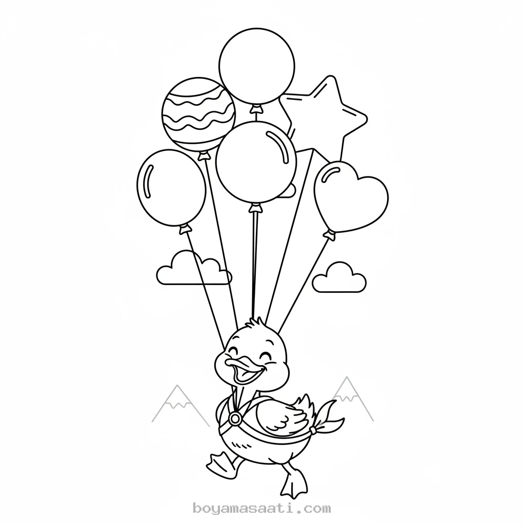 Çocukların motor becerilerini ve yaratıcılıklarını geliştirmeleri için harika bir yol olan bu ücretsiz boyama sayfası, miniklerin hayal gücünü harekete geçirecek. Uçan balonlara tutunmuş sevimli ördek figürü, çocuklar için hem eğlenceli hem de eğitici bir etkinlik sunuyor. Özellikle okul öncesi dönemdeki çocuklar için özenle tasarlanmış bu sayfalar, renkleri tanımalarına ve el göz koordinasyonlarını güçlendirmelerine yardımcı olur.
