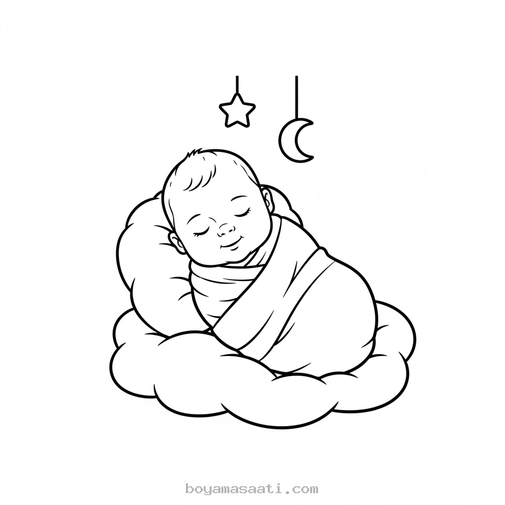 Uyuyan Yeni Doğan Bebek Boyama Sayfası