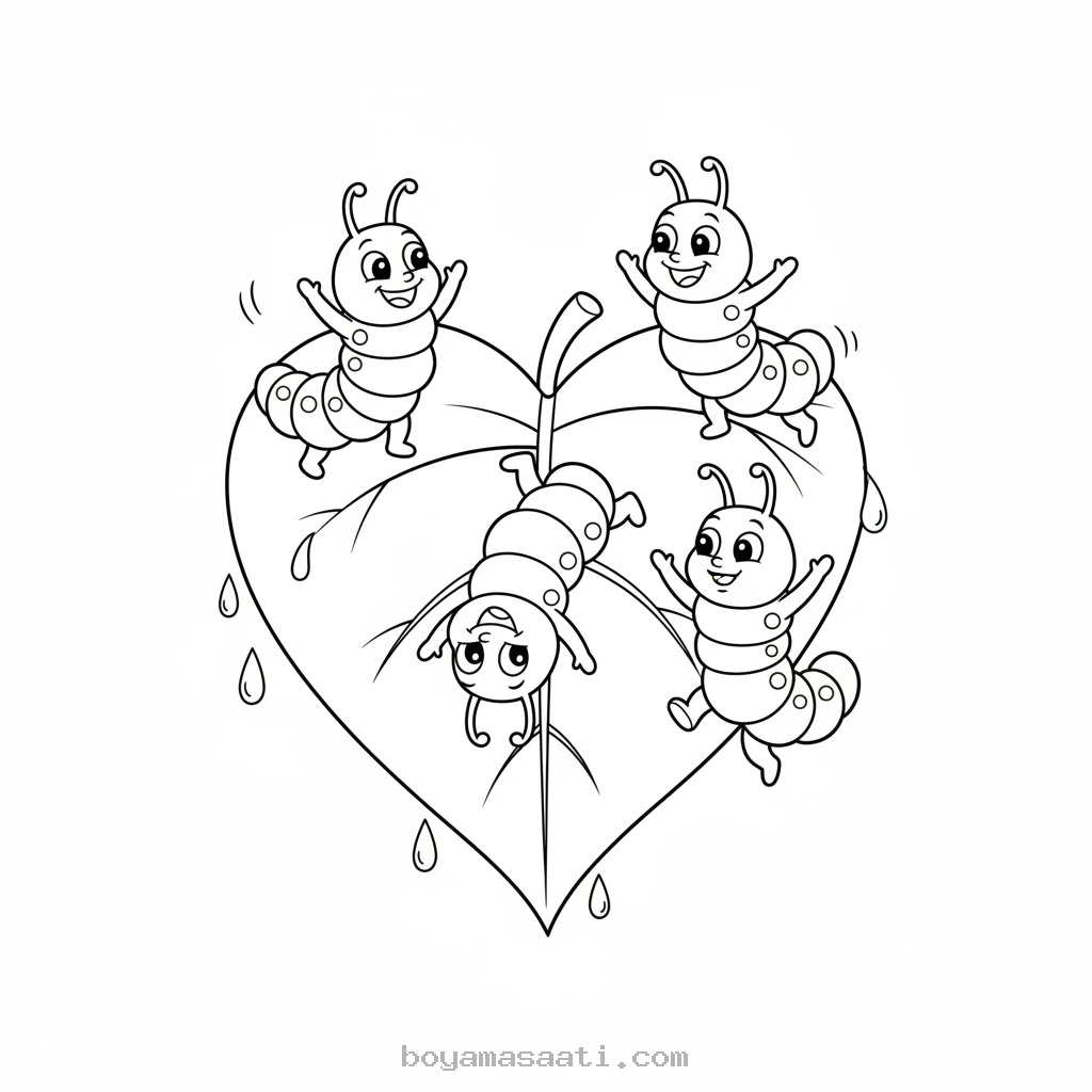 Yaprakta Gezen Neşeli Tırtıl Boyama Sayfası