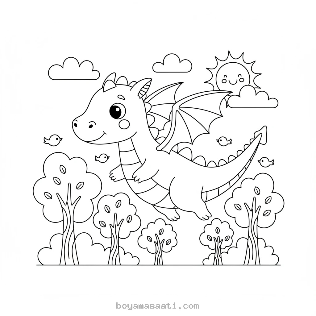 Yeşil Ormanda Uçan Ejderha Boyama Sayfası