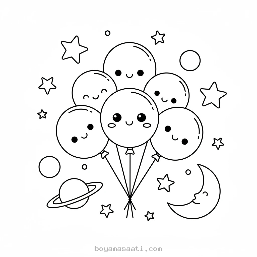 Yıldızlarla Uçan Cesur Balon Boyama Sayfası